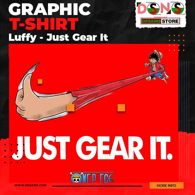 Step into the world of adventure with our One Piece Spirit – Just Gear It T-Shirt. Inspired by Monkey D. Luffy’s unstoppable drive and his legendary Gomu Gomu no Mi powers, this shirt combines anime passion with a stylish twist on the iconic Nike “Just Do It” symbol. Designed exclusively by DESAINS STORE, this anime shirt is perfect for fans who want to showcase their love for One Piece in a bold and unique way.