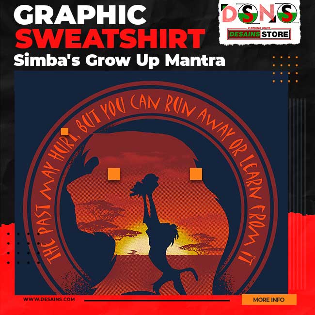 Channel Simba’s journey from cub to king with our “Grow Up Mantra” sweatshirt—a tribute to that pivotal moment when Rafiki smacks sense into destiny. Perfect for Disney adults, quotation apparel lovers, or anyone craving inspirational streetwear. Featuring distressed typography that whispers “The past can hurt. But the way I see it, you can either run from it or learn from it,” this design isn’t just printed—it’s etched in courage.