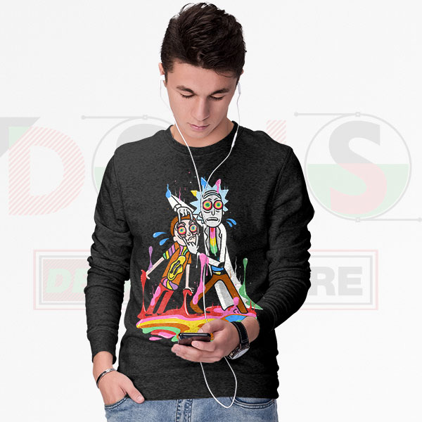 Get lost in color and chaos with this Rick and Morty Trippy Art Sweatshirt!